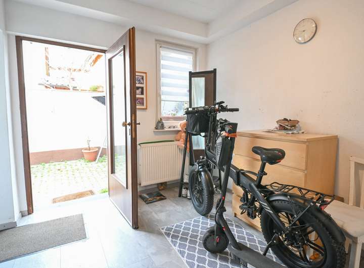 Durch den Hof gelangen Sie in die Garage sowie in den angrenzenden Heizungsraum mit den Öltanks und dem Platz für Ihre Waschmaschine und Ihren Trockner.