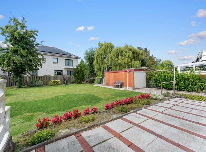 Der große Garten mit 582 m² Grundstücksfläche bietet reichlich Platz zum Spielen, Entspannen oder Gärtnern – ideal für Familien mit Kindern oder Gartenliebhaber. Hier können Sie Ihre persönliche Wohlfühloase schaffen.