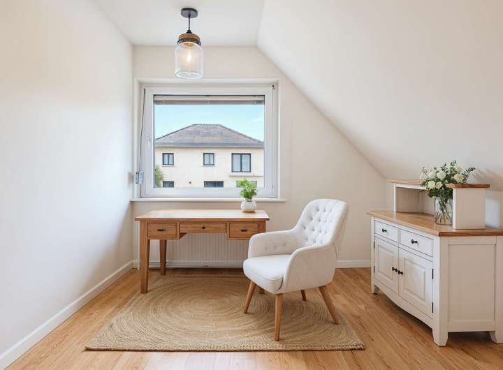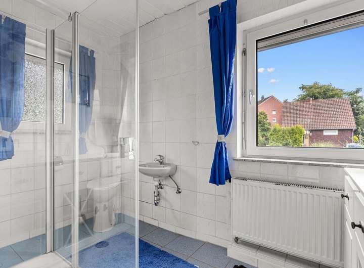 Das Obergeschoss bietet mit insgesamt drei weiteren Zimmern flexible Gestaltungsmöglichkeiten – ob als Schlafzimmer, Kinderzimmer, Homeoffice oder Hobbyraum. Ein zweites Badezimmer sorgt dafür, dass auch Familien mit mehreren Personen genügend Platz und Komfort genießen.