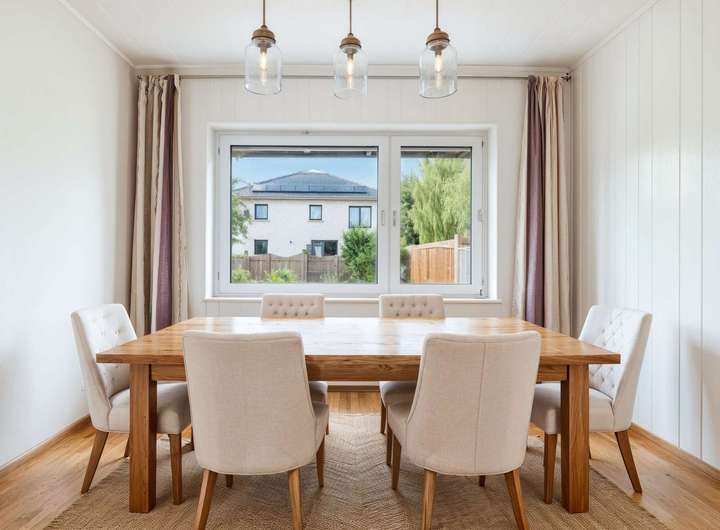 Bereits beim Betreten spürt man den einladenden Charakter des Hauses. Im Erdgeschoss erwartet Sie ein großzügiges Wohnzimmer, das zu geselligen Stunden mit Familie und Freunden einlädt. Die angrenzende Küche bietet ausreichend Platz für gemeinsame Kochabende, während ein helles Esszimmer den zentralen Treffpunkt des Familienalltags bildet. Ein Badezimmer auf dieser Ebene sorgt für zusätzlichen Komfort.