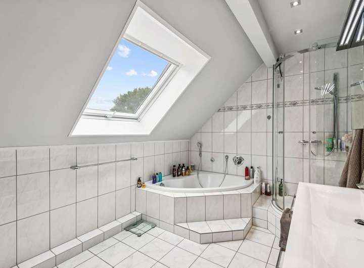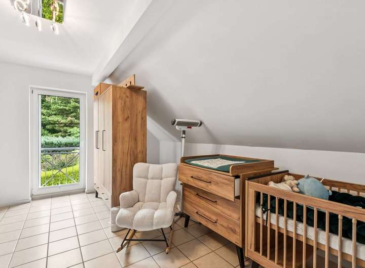 Im Obergeschoss befindet sich das Hauptbad mit Dusche, Wanne und Tageslichtfenster – hell, freundlich und praktisch geschnitten. Weitere Zimmer bieten flexible Nutzung als Schlaf-, Kinder- oder Arbeitszimmer.