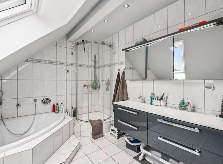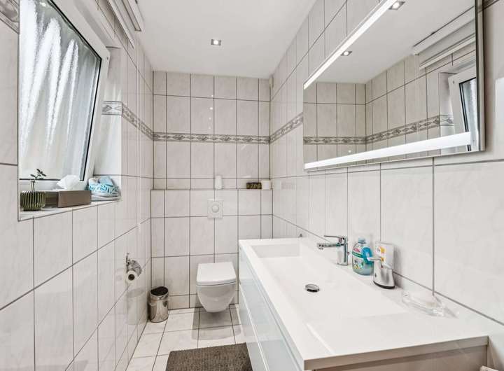 - Hauptbad mit Dusche, Wanne & Fenster + Gäste-WC