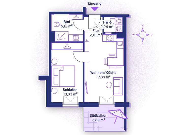 Gestalten Sie Ihre Wohnung ganz nach Ihren Vorstellungen: Der Grundriss kann individuell angepasst werden. Maßgefertigte Einbauschränke, eine hochwertige Einbauküche in Schreinerqualität oder integrierte Deckenbeleuchtung bieten zusätzlichen Komfort.