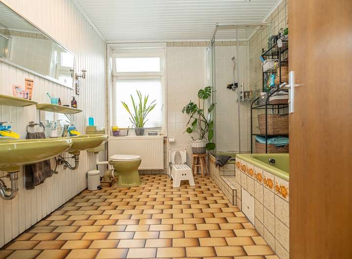 Auf einem 692 m² großen Grundstück wurde 1920 dieses vielseitige Wohnhaus mit zusätzlichem Verkaufsbereich errichtet. Der Wohnbereich im Erdgeschoss wurde grundsätzlich 1995 saniert und umfasst ungefähr 122 m², darüber hinaus gibt es einen kleinen Gewerbebereich mit zusätzlichen 45 m² sowie einer Garage die als Nutzfläche zählt. Der obere Wohnbereich wurde durch die jetzigen Eigentümer zwischen 2018 und 2020 ausgebaut. In diesem Zeitraum ist alles neu entstanden, von der Elektrik bis zur Dachdämmung und der Dacheindeckung. Es sind vier Schlafzimmer und ein zweites Badezimmer und somit mehr als 94 m² dazu gekommen. Insgesamt verfügt das Objekt somit über mindestens 262 m² Fläche und einer Garage im Wohnhaus.