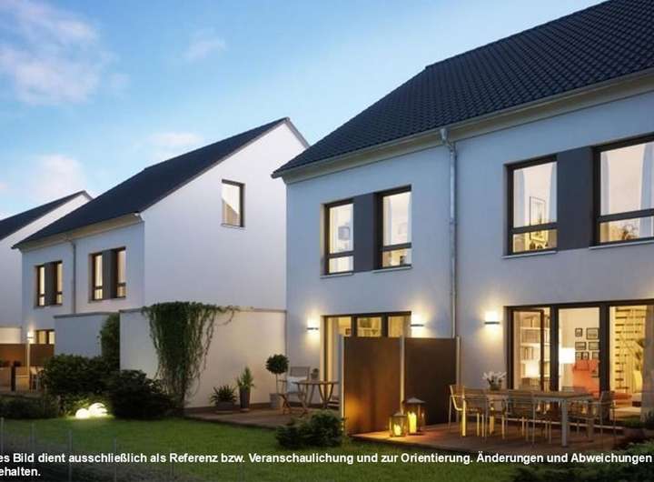 Das ausgeklügelte Wärmekonzept garantiert durch die Beheizung aller Doppelhaushälften mittels Infrarotheizpaneele sowie die Warmwassererzeugung über Wärmepumpen neben dem KfW-40-Standard auch in Zukunft überschaubare Heizkosten. Photovoltaikanlagen für eigene Stromproduktion runden die Energieeffizienz der Gebäude ab. Die wesentlichen Daten und Fakten auf einen Blick: + Großzügige Doppelhaushälften inkl. Grundstücksanteil und angelegten Außenanlagen + Terrasse und Gartenanteil sowie ein Stellplatz und eine Garage je Haus sind im Preis inkludiert + Offene Wohnküche mit fließendem Übergang zum großzügigen Wohn- & Esszimmer mit knapp 35 m² Wohnfläche und großer Fensterfront + Geflieste Diele mit Garderobennische sowie ein Gäste-WC im Eingangsbereich + Jeweils zwei Schlafzimmer in Obergeschoss und Dachgeschoss mit großen, bodentiefen Fenstern für helle & freundliche Räume mit einer Größe zwischen 13m² und 17m² + Das Badezimmer im Obergeschoss ist dank Doppelwaschbecken, Badewanne und bodengleich begehbarer Dusche bereits voll ausgestattet sowie komplett gefliest + Hauswirtschaftsraum mit Anschlüssen für Waschmaschine & Trockner ist praktischerweise direkt vom Bad aus begehbar + Großer Abstellraum im 2. OG ist optional gegen Aufpreis auch als zusätzliches Duschbad oder als großer Hauswirtschaftsraum erhältlich + Dachboden mit ca. 20 m² als geräumige Abstellfläche ausgebaut „Stein auf Stein" gebaut – Massivbauweise in Kalksandstein + Effizienzhausstandard EH 40 + Optimale Wärme- und Schalldämmung inkl. Wohnraumlüftung + Günstige Nebenkosten durch ein hocheffizientes und kostensparendes Energiekonzept