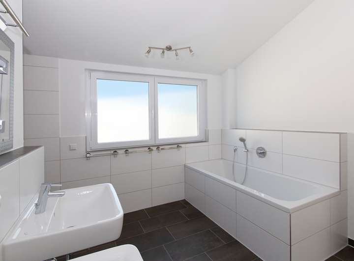 DasDachgeschoss - ohne Dachschrägen - gliedert sich in drei Schlafzimmer sowie in ein weiteres hochwertigen Tageslichtbad mit Badewanne und Dusche.