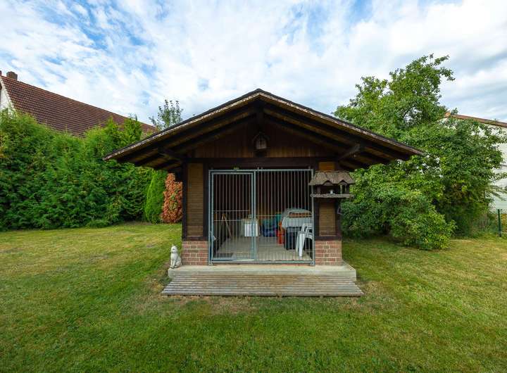 Das großzügige Grundstück erstreckt sich über etwa 2.880 m² und präsentiert sich in einem sehr gepflegten Zustand. Es bietet viel Platz für Garten, Freizeitaktivitäten und Tierhaltung. Neben zwei Garagen steht außerdem ein Hundezwinger zur Verfügung. Besonders hervorzuheben ist die geräumige Scheune, die vielseitige Nutzungsmöglichkeiten bietet und sich ideal zur Unterbringung von Wohnmobilen, Campern oder weiteren Fahrzeugen eignet.