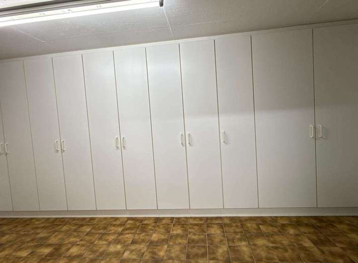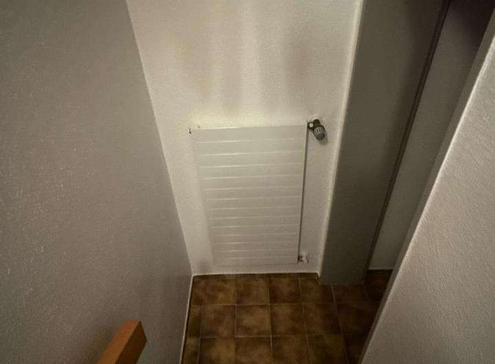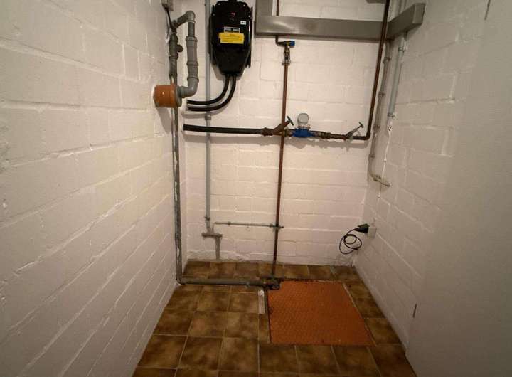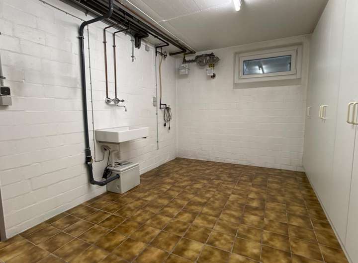 Die Räume im Kellergeschoss sind weiß gestrichen und insgesamt gefliest (beige-braun).