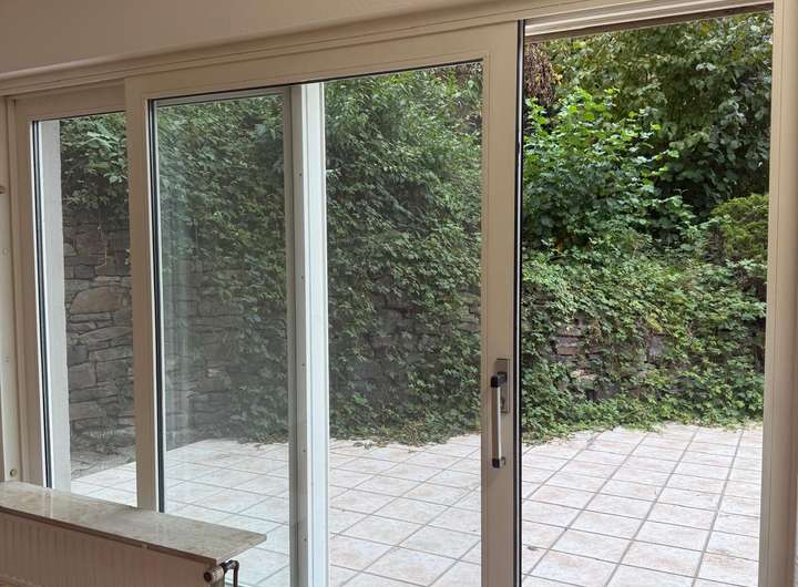 - Fensterfront zum Gartenbereich für viel Tageslicht