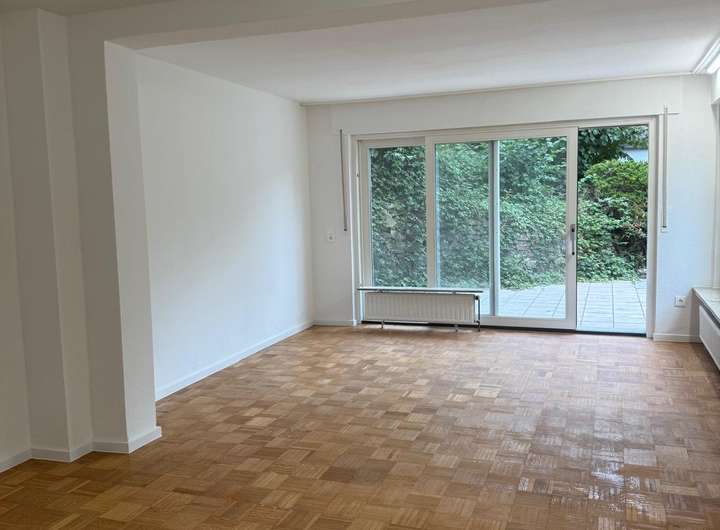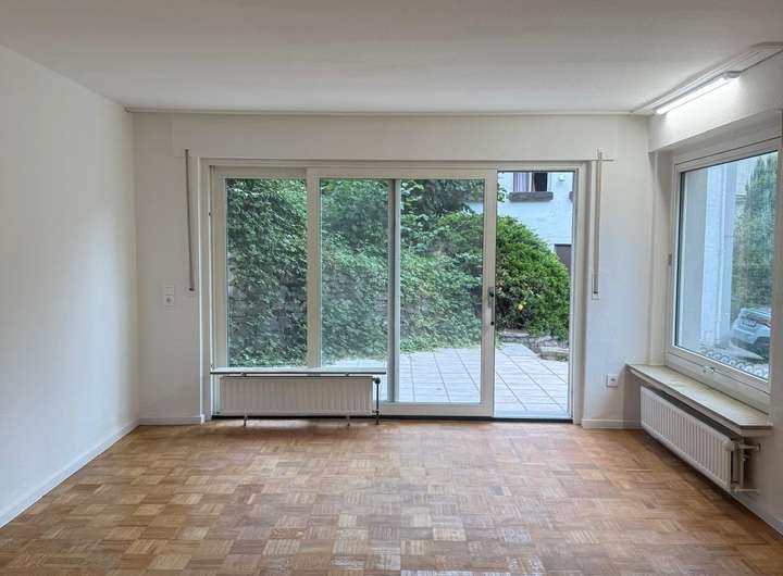 - Helles Wohnzimmer mit Zugang zur Terrasse und Blick ins Grüne