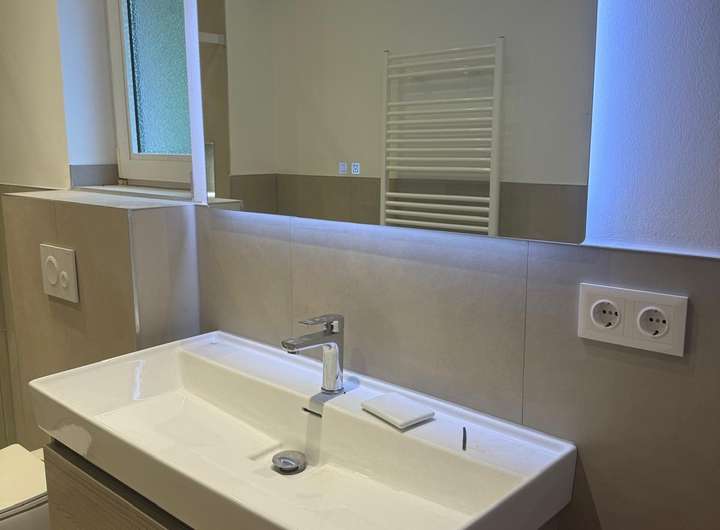 - Teilweise aufgewertet, z. B. im Bad und Innenbereich