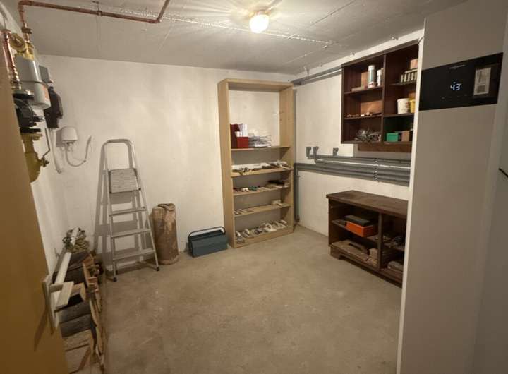 Im Innenbereich zeichnet sich das Haus durch eine großzügige Raumaufteilung aus. Das Wohnzimmer ist mit einem Kamin ausgestattet. Darüber hinaus stehen mehrere Kellerräume sowie ein geräumiger Hobbyraum zur Verfügung. Das Objekt bietet große Kinderzimmer sowie ein familiengerechtes Badezimmer.