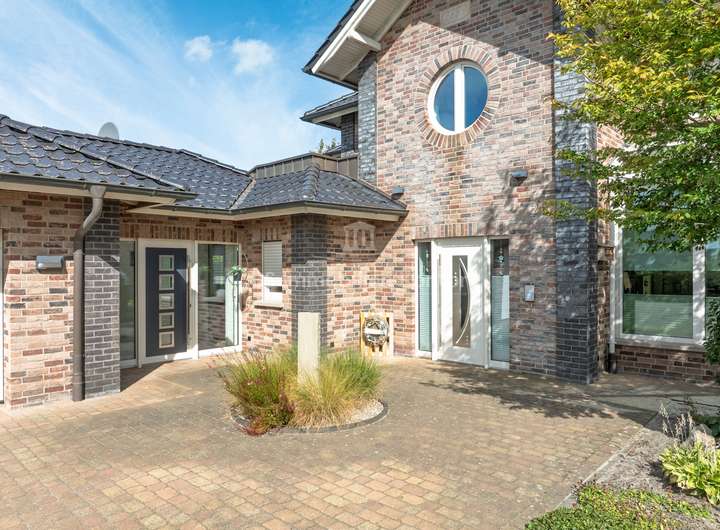 Dieses vielseitig nutzbare Einfamilienhaus in Rhede vereint eine durchdachte Grundrissgestaltung, hochwertige Ausstattung und ein großzügiges Grundstück von ca. 1.436 m². Mit Einliegerwohnung, separatem Bürotrakt und angrenzender Doppelgarage bietet es die perfekte Kombination aus Wohnen und Arbeiten – ideal für Familien, Selbstständige oder Mehrgenerationenkonzepte.