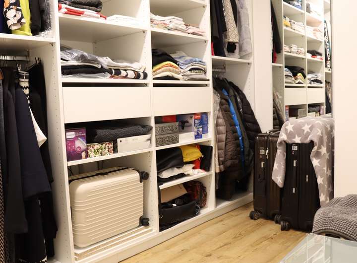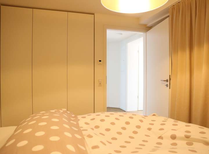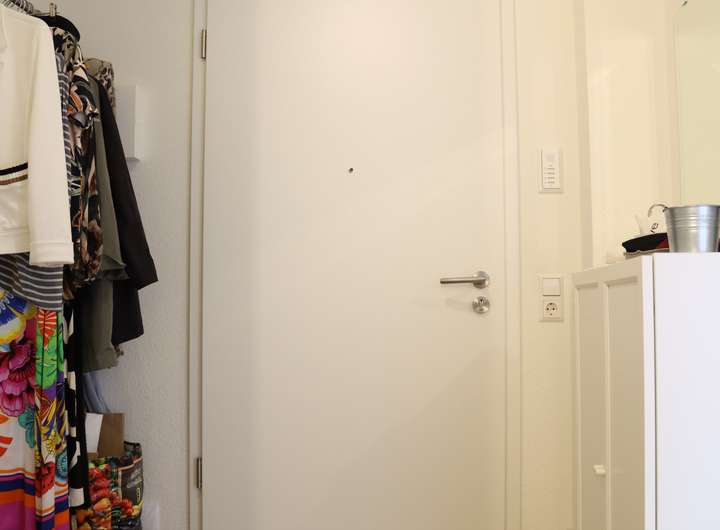 Diese zentral gelegene und barrierefreie Wohnung verfügt über zwei klassische Zimmer, nämlich ein schönes Wohnzimmer mit Fenstern sowie ein separates Esszimmer mit offener Küche. Vom Flur aus gelangt man auf der rechten Seite in einen innenliegenden Raum, der sich ideal als Ankleidezimmer eignet. Auf der linken Seite befindet sich ein weiterer innenliegender Raum, der dank einer Klimaanlage als Schlafzimmer genutzt werden kann, auch wenn er kein Fenster hat.