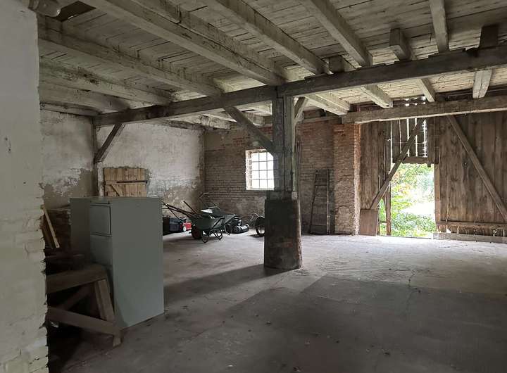 Die große Scheune mit einer Grundfläche von ca. 155 m² wurde bereits teilsaniert und bietet ein enormes Potenzial.