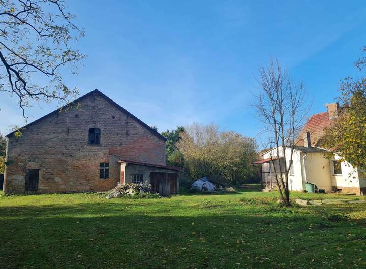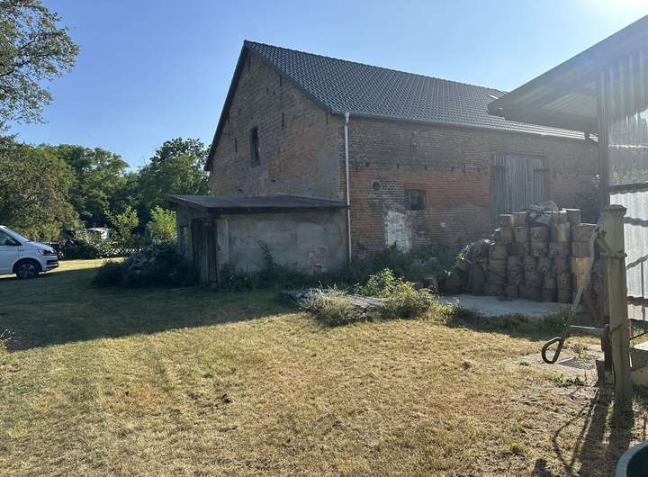 Derzeit befinden sich auf dem Grundstück ein kleines EFH und eine große Scheune.