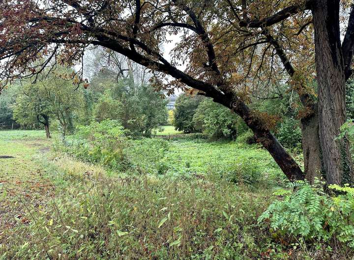 Früher gehörte dieses Grundstück zu einem großen Gutshof und war als Parkanlage mit Teich gestaltet.