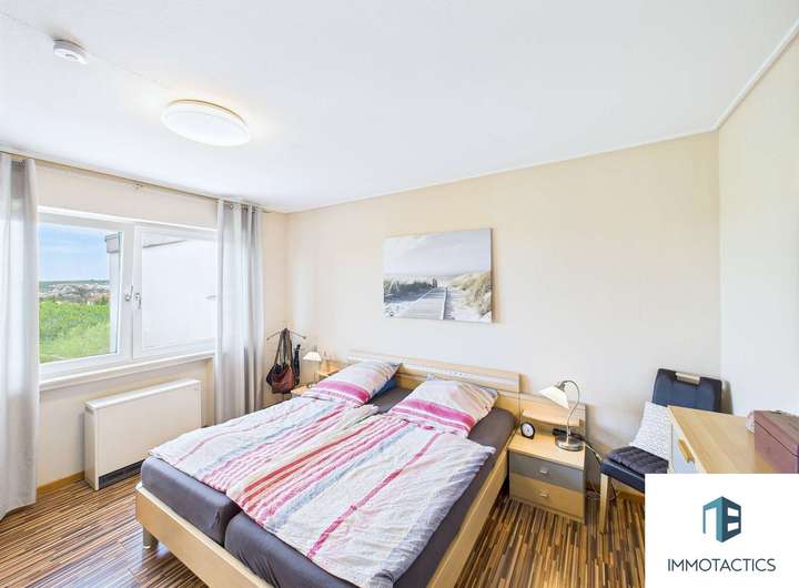- Gleichwertig strukturierter Grundriss: Wohnzimmer, Schlafzimmer, Büro