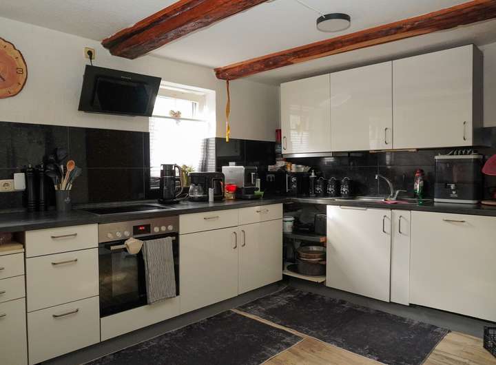 ca. 180 m² Wohnfläche (Haupthaus mit 5,5 Zimmern, Einliegerwohnung mit 2 Zimmern) Gasheizung mit Warmwasseraufbereitung Vinylböden in Flur und Badezimmern Zwei moderne, sanierte Badezimmer Einbauküche im Kaufpreis enthalten Separate Einliegerwohnung mit eigenem Eingang Hofeinfahrt und elektrisches Tor von der Scheune zum Garten Gartenfläche mit Gestaltungspotenzial Große Scheune mit Option auf Umbau zu Wohnfläche