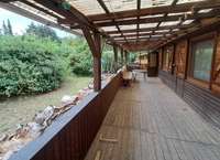 Auf der Gartenseite des Hauses ist eine große überdachte Terrasse / Veranda mit direktem Zugang aus dem Wohn-/Essbereich. Hier können sie Ruhen, Verweilen und Entspannen.