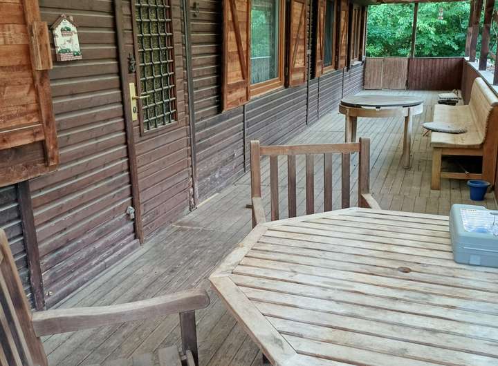 Das Haus wurde 1968 mit Holzfachwerk erstellt und außen mit Holz verkleidet. 1974 wurde ein Zimmer mit Duschbad ergänzt sowie die Terrasse überdacht.