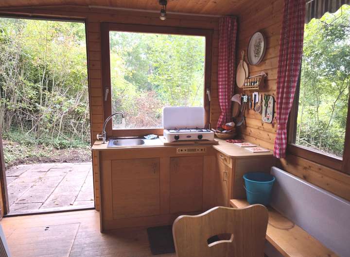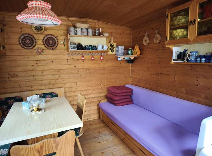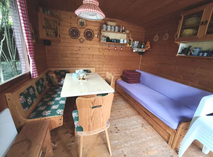 Das Grundstück ist insgesamt 978 Quadratmeter groß und besticht durch eine geräumige doppelwandige Gartenhütte mit einer großen sonnigen Terrasse, welche zum Grillen und zum Verweilen einlädt. Die Gartenhütte wurde liebevoll eingerichtet, u.a. mit einer gemütlichen Eckbank, einem Schlafsofa und einer kleinen Küche mit Spüle und Gasherd. Für eine angenehme Wärme sorgt ein Gasheizkörper, somit optimal ausgestattet zum gemütlichen Essen, Zusammensitzen oder als Rückzugsort.