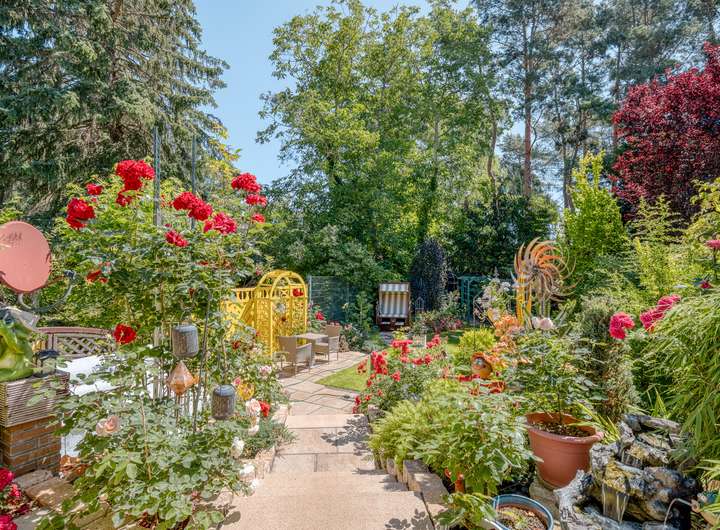 • Gepflegter Garten mit unverbaubarer Sicht, Strandkorb und drei Geräteschuppen