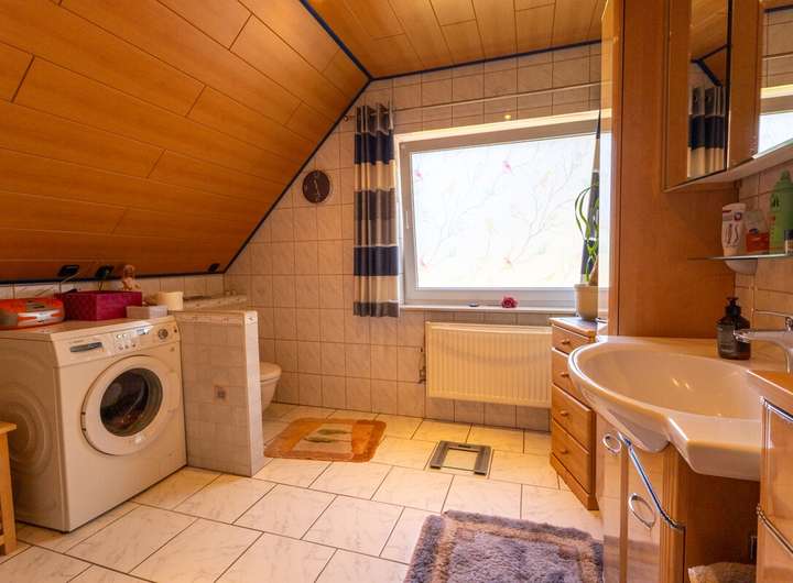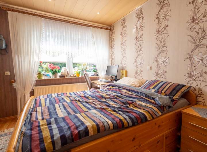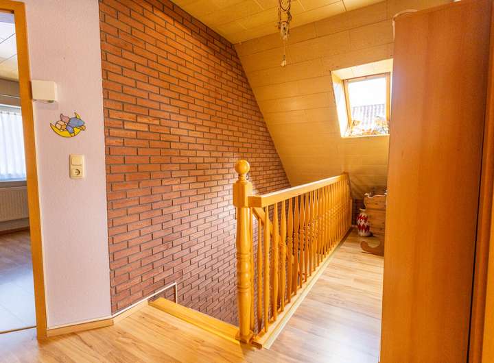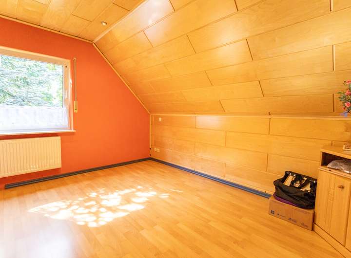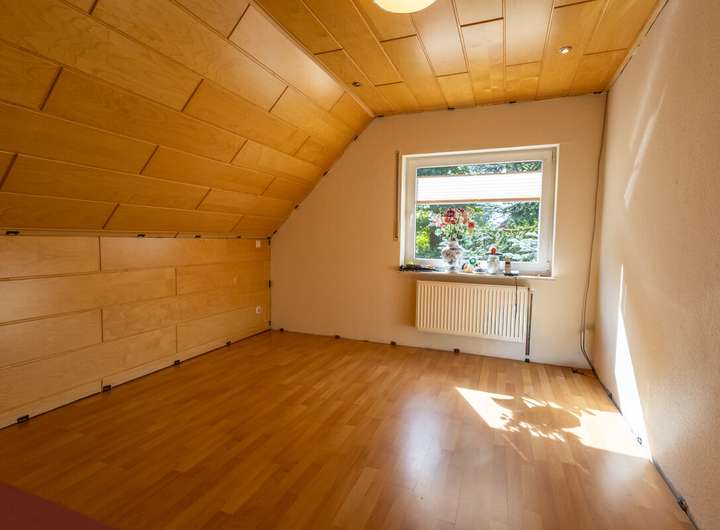Im Obergeschoss erwarten Sie drei weitere Zimmer, die sich ganz nach Ihren Wünschen gestalten lassen – ob Kinderzimmer, Büro oder Gästezimmer. Ein helles Badezimmer mit Dusche sowie ein Heizungsraum mit einer neuen Gas-Brennwerttherme (2023) runden das Raumangebot ab.