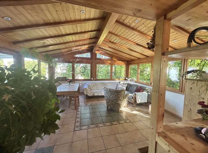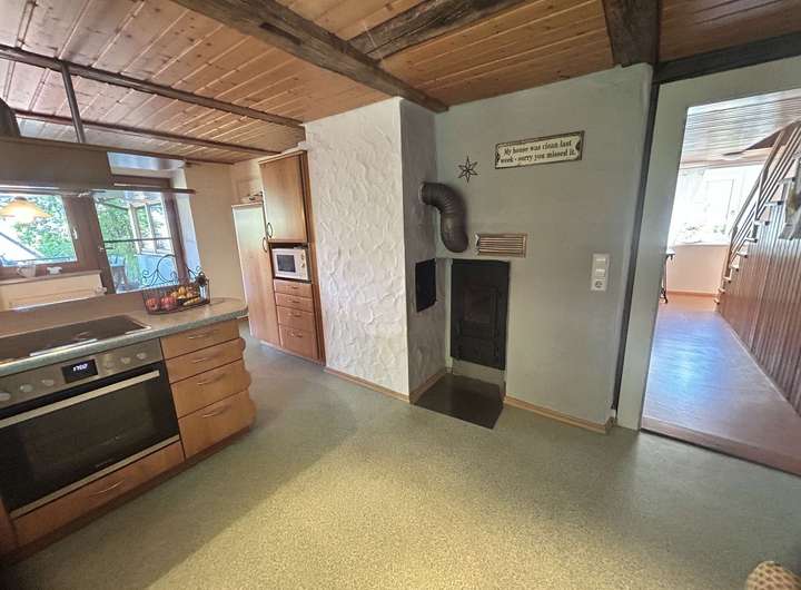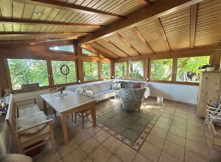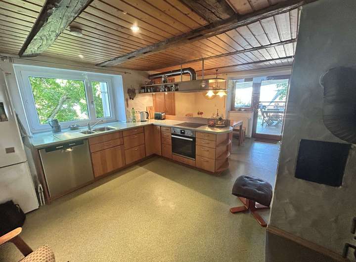 Willkommen in Ihrem neuen Zuhause, einem einmaligen, freistehenden Einfamilienhaus, das perfekt für große Familien geeignet ist. Ach als Mehrgenerationenhaus bieten sich interessante Möglichkeiten an. Das Haus verfügt über eine weiträumige Mansarde die zusätzlichen Wohnraum bietet. Im Erdgeschoss steht eine ausbaufähige separate Einzimmerwohnung mit eigenem Eingang und bedachter Terrasse zur Verfügung. Das lichtdurchflutete Wohnzimmer wird im Winter mit einem zentralem Kachelofen beheizt. Im Keller befindet sich ein traditioneller Brotbackofen. Im großen Garten spenden verschiedene Nutzbäume Schatten neben herrlichen, sonnigen Blumenbeeten.