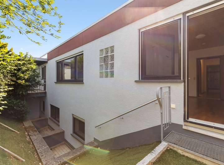 Der zum Verkauf kommende attraktive Flachdach-Bungalow wurde ca. 1972 in guter Wohnlage von Reichenbach erstellt. Die Wohnfläche, bestehend aus Hauptwohnung und Einliegerwohnung, beträgt insgesamt ca. 205 m².