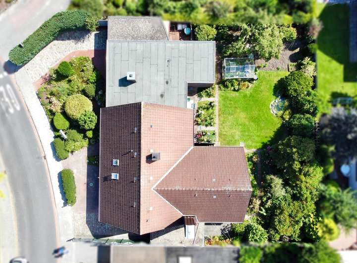 - Hauptwohnung ca. 175 m²: Wohnzimmer, Esszimmer, Küche, vier Schlafzimmer, Büro, zwei Badezimmer, zwei Gäste-WCs,  zwei Kellerräume, Balkon, Terrasse, Garage