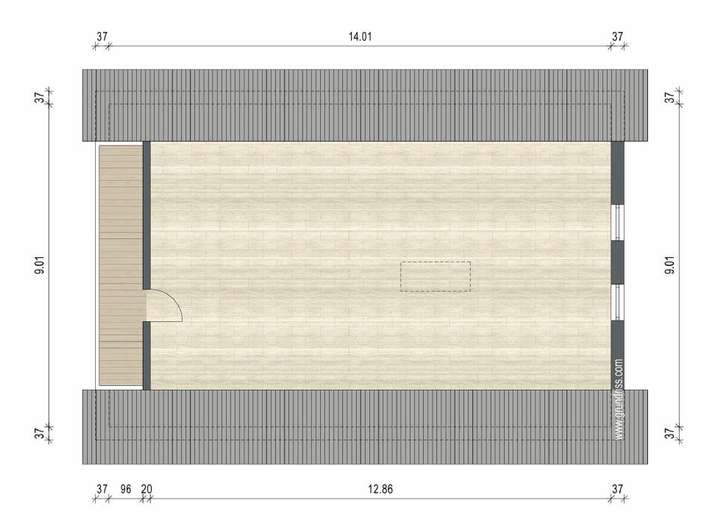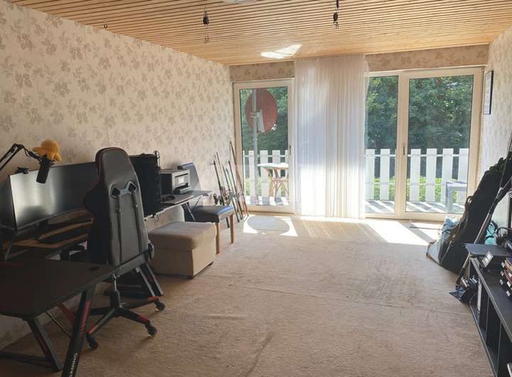 Die Immobilie steht auf einem Eigentumsgrundstück. Das Objekt ist im Obergeschoss nicht ausgebaut, ursprünglich war das Objekt ein Flachdach, der Dachaufbau erfolgte erst später. Zum OG führt eine feste Holztreppe, die Räume sind jedoch nicht ausgebaut.