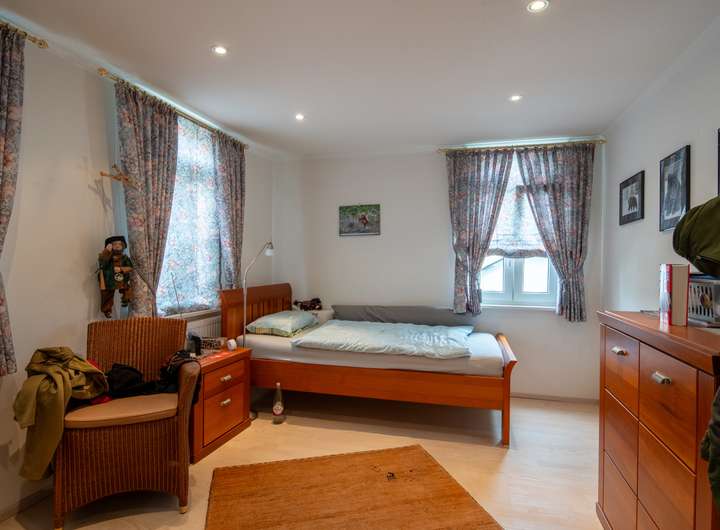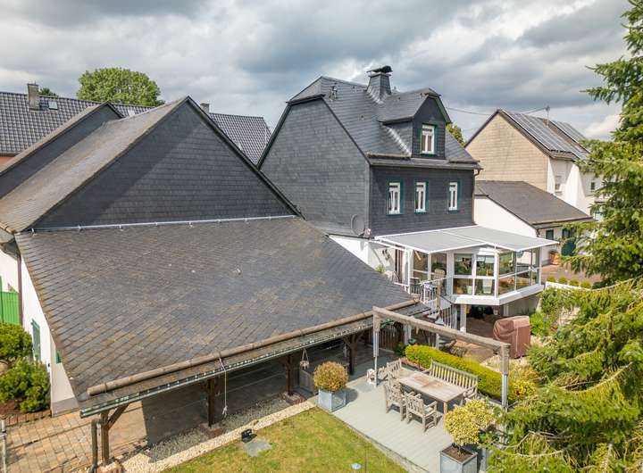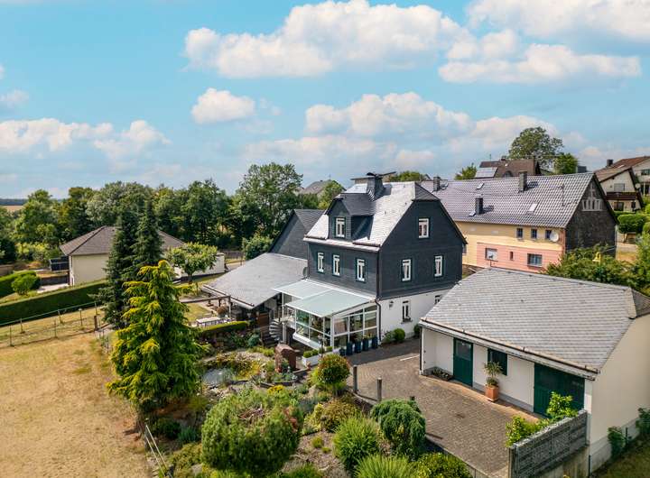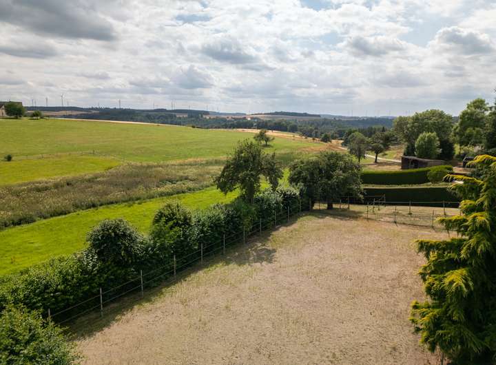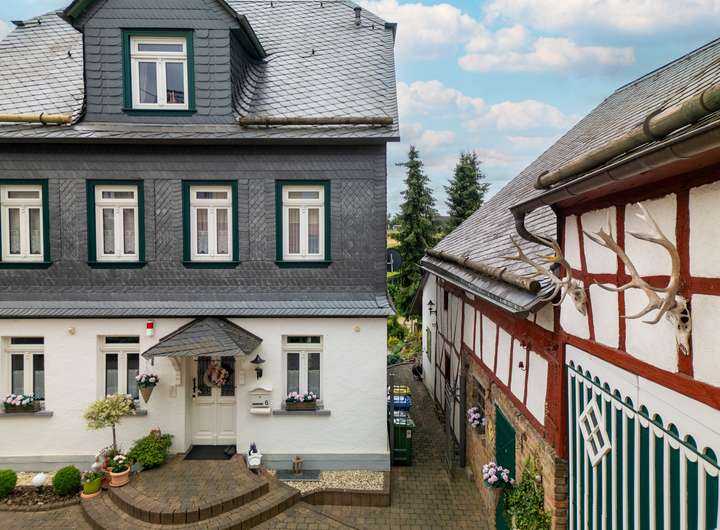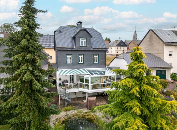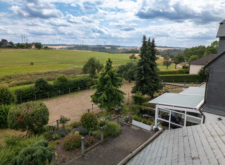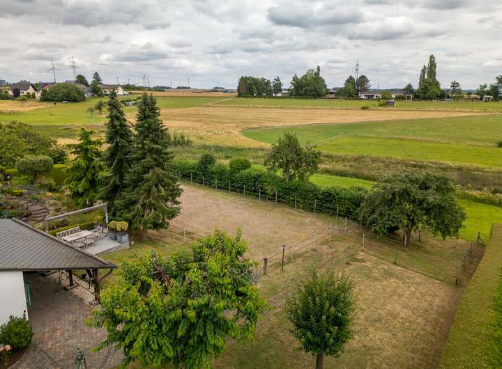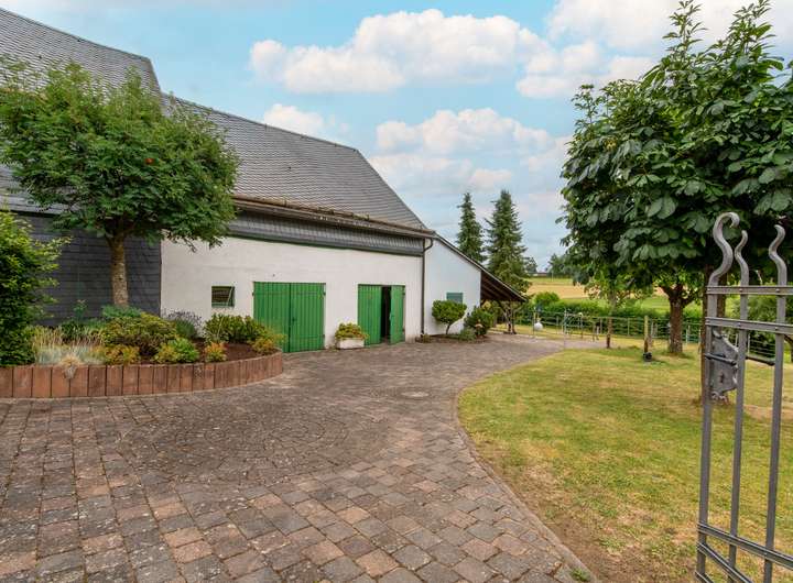 Leben mit Pferden – Ihr Traum vom eigenen Pferdegehöft wird Wirklichkeit Inmitten der idyllischen Landschaft des vorderen Hunsrücks, am ruhigen Ortsrand von Schwall und nur zwei Kilometer von Emmelshausen entfernt, erwartet Sie ein außergewöhnliches Liebhaberobjekt in unverbaubarer Blicklage: ein großzügiges, stilvoll wiederaufgebautes Pferdegehöft mit besonderem Charme, Komfort und ausreichend Platz für Mensch und Tier. Das ursprünglich im Jahr 1902 errichtete Wohnhaus wurde nach einem Brand im DG im Jahr 2009 originalgetreu neu aufgebaut – mit viel Liebe zum Detail und unter Berücksichtigung modernster Technik. So vereint das rund 177 m² große, massiv errichtete Haus traditionelle Bauweise mit zeitgemäßem Wohnkomfort. Es verteilt sich über Erdgeschoss, Obergeschoss und Dachgeschoss und bietet neben einer großzügigen Terrasse und einem lichtdurchfluteten Wintergarten ausreichend Raum für die ganze Familie. Hochwertige Holzelemente, eine offene Küche, ein gemütlicher Kaminofen sowie ein großzügiges Dachstudio mit Sauna, Arbeitszimmer oder Schlafzimmer mit Bad und Gäste-WC schaffen ein wohnliches Ambiente mit besonderer Atmosphäre. Direkt angrenzend befindet sich die große, teilsanierte Scheune mit einem neu angebauten Stall mit beheizten, thermostatgesteuerten Tränken und Platz für bis zu drei Großpferde. Neben einem überdachten Vorplatz finden sich dort auch eine Sattelkammer mit Starkstromanschluss, diverse Abstellräume z.B. ein Raum für Gartenzubehör und separater Toilette, sowie ausreichend Platz für Fahrzeuge und alle nötigen Gerätschaften zur Bewirtschaftung des Anwesens. Ein zusätzliches, neues und übergroßes Garagen- und Gerätegebäude bietet weiteren Stauraum für Autos, Gartengeräte oder landwirtschaftliches Zubehör. Das Herzstück für Pferdeliebhaber ist jedoch die 15m x 30m große Paddockfläche im Garten und das weitläufige, etwa 7.100 m² große Areal direkt am Haus, das zum Teil als Weidefläche genutzt wird und teilweise sumpfigen Naturboden aufweist – ideal für artgerechte Pferdehaltung. Vom Stall aus können Ihre Pferde eigenständig auf die Weide gelangen. Ergänzt wird das Angebot durch eine zusätzliche, nahegelegene Weidefläche mit einem Hektar Größe, die ebenfalls zum Anwesen gehört. Der liebevoll angelegte Garten mit Teich rundet das landschaftliche Idyll ab und lässt sich wunderbar vom Wintergarten oder der Terrasse aus genießen. Die Immobilie besticht durch ihre hochwertige Ausstattung: Ein Walmdach mit altdeutscher Naturschieferdeckung, stilgerechte Fassadenverkleidung im Hunsrücker Bauernhausstil, ein Bruchsteinkeller, Sprossenfenster, Kassettentüren, Parekttböden, eine hochwertige Alarmanlage, eine massive Holztreppe sowie eine Ölheizung und eine 8.500 Liter fassende Zisterne zur Gartenbewässerung bieten eine solide und zugleich charmante Basis für Ihr neues Zuhause. Dieses einzigartige Anwesen bietet Pferdefreunden nicht nur ein stilvolles Zuhause, sondern auch die seltene Gelegenheit, Leben und Leidenschaft unter einem Dach zu vereinen. Die Immobilie wird nach Absprache im ersten Quartal 2026 bezugsfrei.
