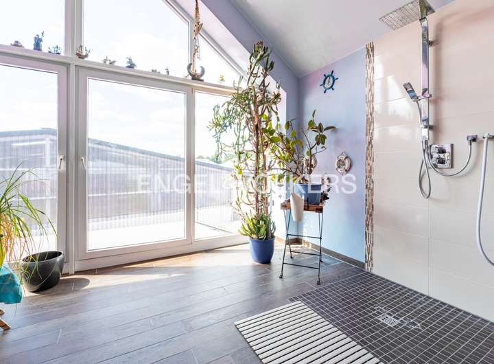 Im nachträglich ausgebauten Dachgeschoss erwartet Sie ein luxuriöser Wellnessbereich mit Sauna, Dusche, Solarium und Panoramafenster. Ein großer Aufenthaltsraum mit ca. 113 m² Wohnfläche, Klimaanlage sowie ein weiteres Bad mit Wanne und Dusche bieten zusätzlichen Wohnkomfort.