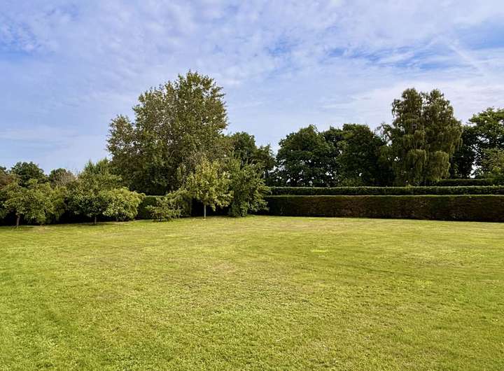 Besonders reizvoll ist die geschützte Lage in zweiter Reihe, die maximale Privatsphäre garantiert und gleichzeitig einen weiten, unverbaubaren Blick über Felder und Weideflächen bietet. Die üppige Begrünung und die natürliche Einbettung machen das Grundstück nahezu uneinsehbar – ein echtes Refugium mit Seltenheitswert.