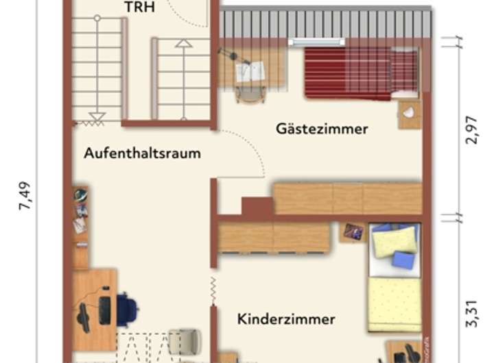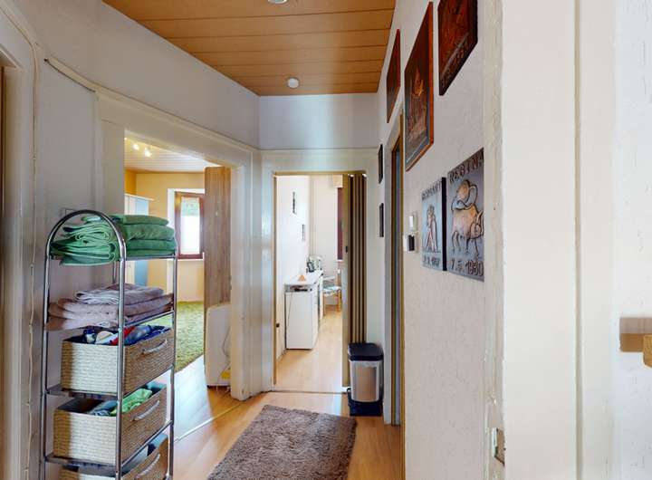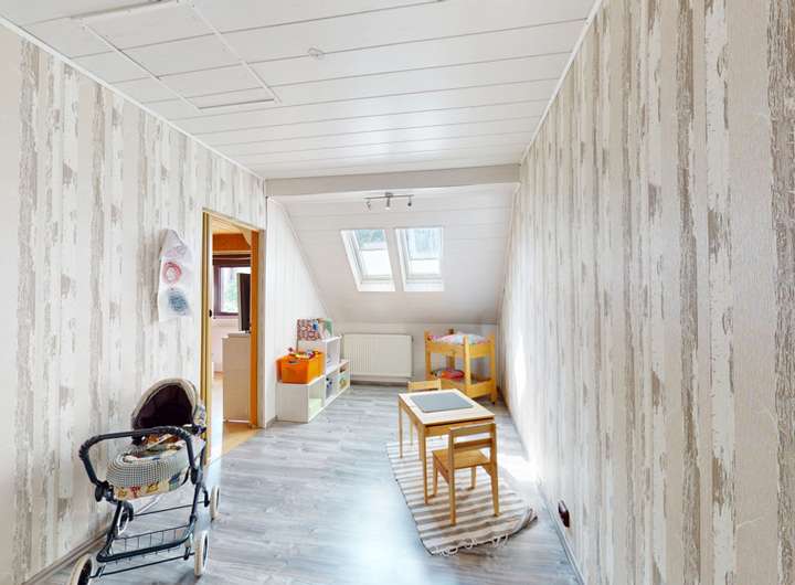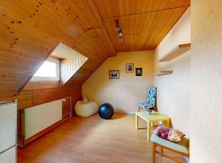 Das ausgebaute Dachgeschoss bietet zwei weitere Schlafzimmer sowie einen offenen Studio-Bereich – ideal als Gästebereich, Homeoffice oder Rückzugsort. Dachschrägen verleihen den Räumen Gemütlichkeit und Charakter.