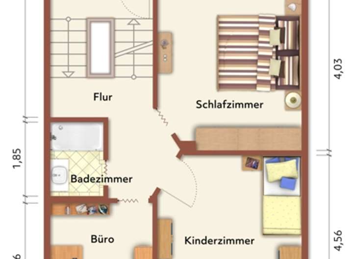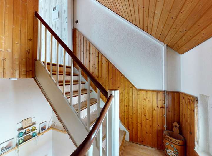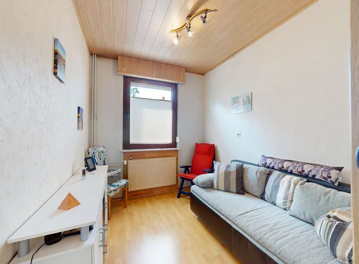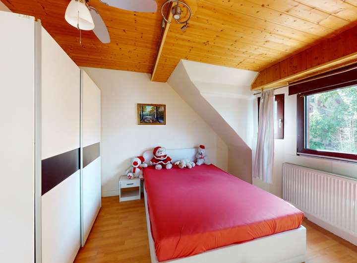 Im Obergeschoss befinden sich das geräumige Hauptschlafzimmer mit Zugang zum Balkon, ein weiteres Schlafzimmer, ein modernes Badezimmer, sowie ein zusätzlicher Raum mit Potenzial für Büro oder Ankleide. Diese Etage überzeugt durch flexible Nutzungsmöglichkeiten und viel Platz.