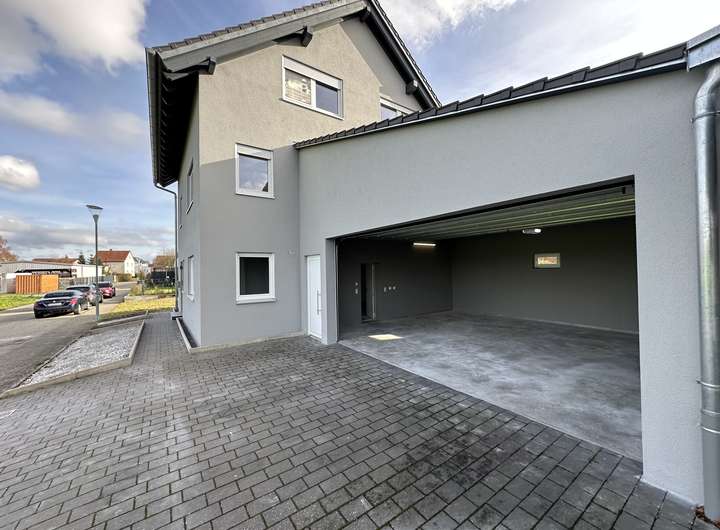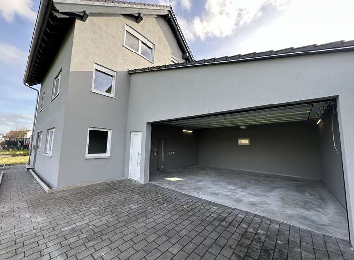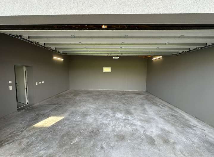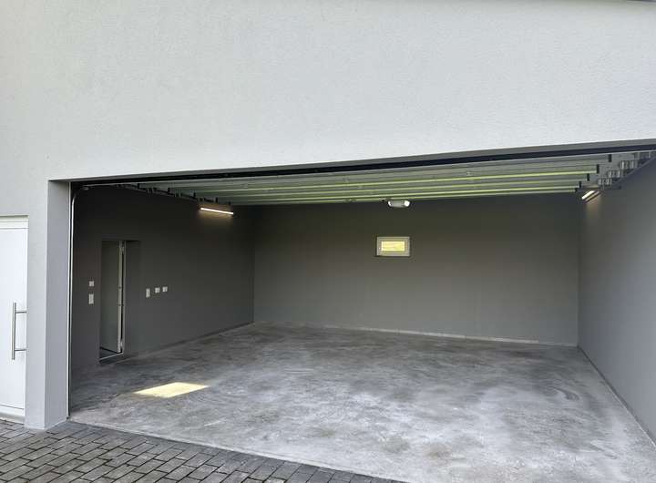 Großzügige Doppelgarage mit elektrischem Sektionaltor und direktem Zugang ins Haus.
