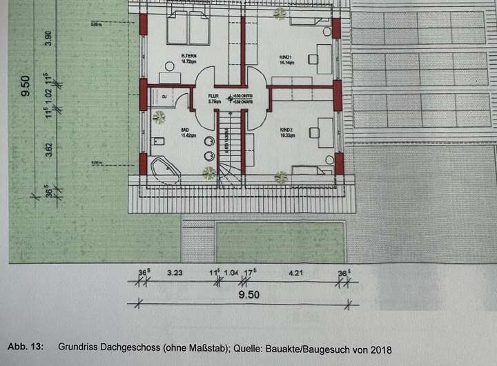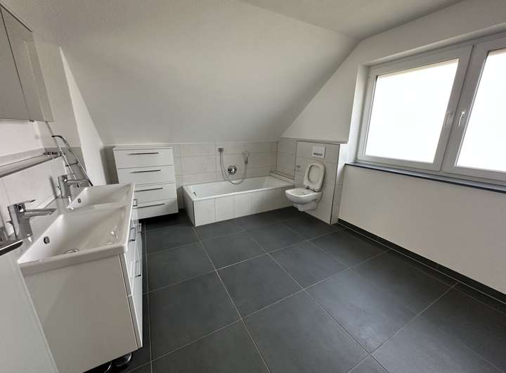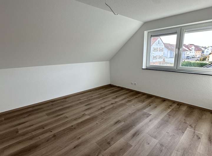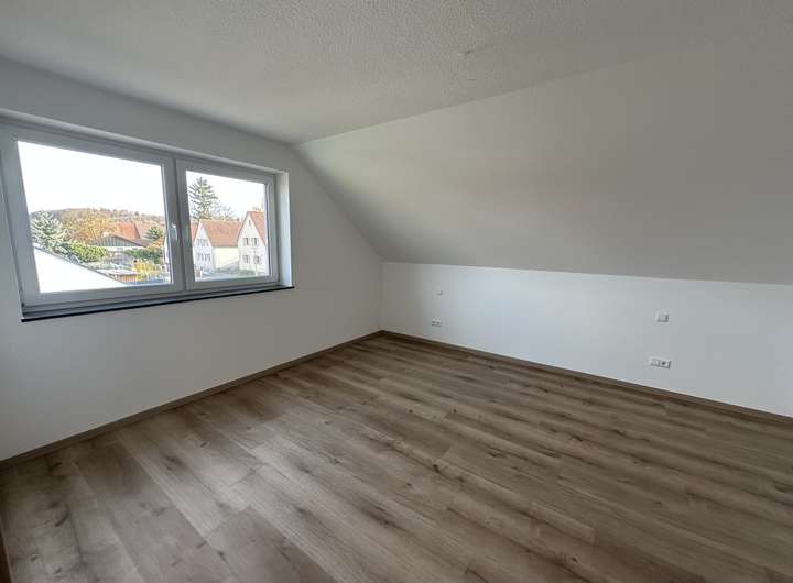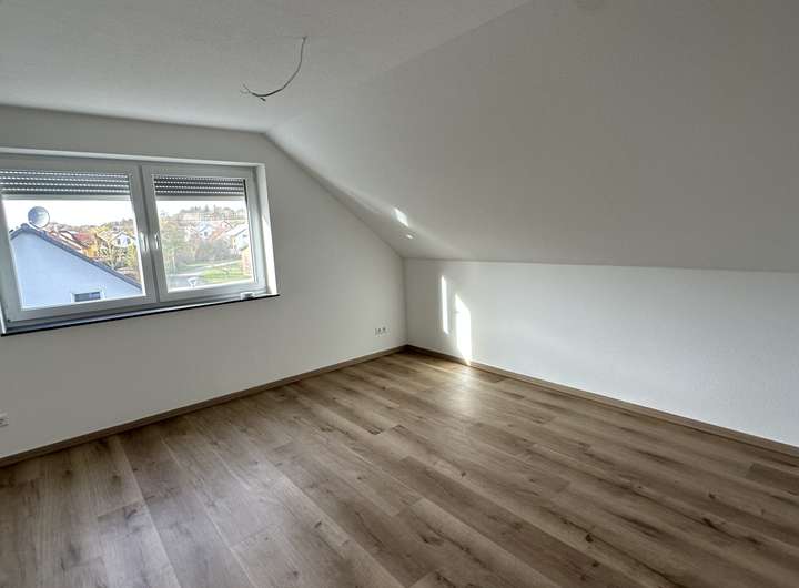 Im Dachgeschoss befinden sich die privaten Rückzugsorte: zwei helle Kinderzimmer, ein Elternschlafzimmer und ein großzügiges Badezimmer.