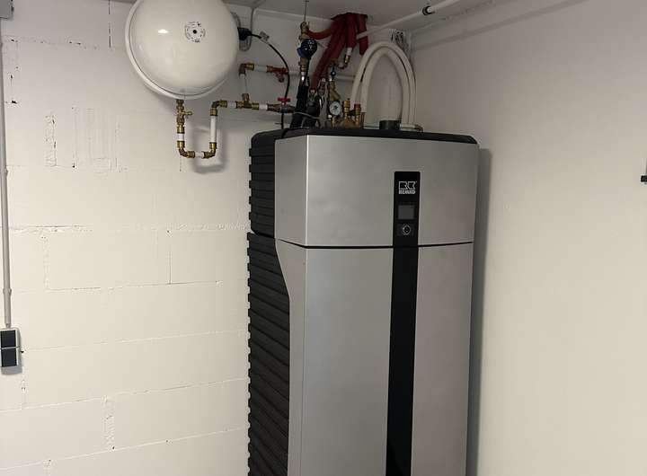 Moderne Wärmepumpe (Marke Remko) – effiziente, umweltfreundliche Heiztechnik.