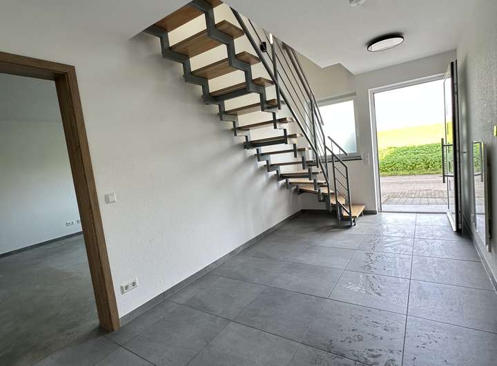 Dieses freistehende Einfamilienhaus in der Frühlingstraße 5 in Kirchardt-Berwangen ist mehr als nur ein Ort zum Wohnen – es ist ein Ort zum Ankommen, Durchatmen und Wohlfühlen. Erbaut im Jahr 2020 in solider Massivbauweise, bietet es auf drei Ebenen ein durchdachtes Raumkonzept, modernste Technik (Wärmepumpe + Photovoltaik) Auch die besondere Lage, die in ihrer Form kaum zu übertreffen ist: unverbaubar direkt am Feldrand, mit weitem Blick in die Natur.