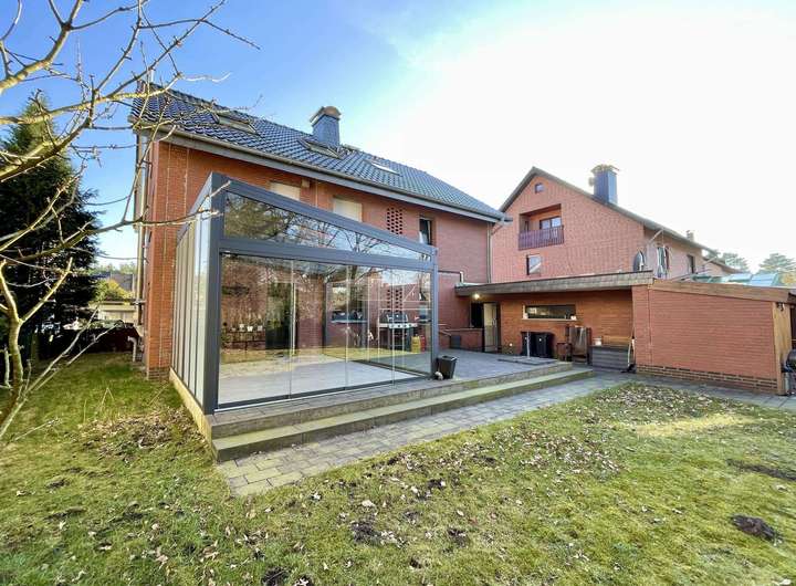 Der Wohnkomfort wird durch zahlreiche Ausstattungsmerkmale wie einen Kamin, einer Fußbodenheizung, einen modernen Wintergarten sowie ein Gartenhaus ergänzt. Insgesamt zeichnet sich das Erdgeschoss durch seine offene und helle Atmosphäre aus.