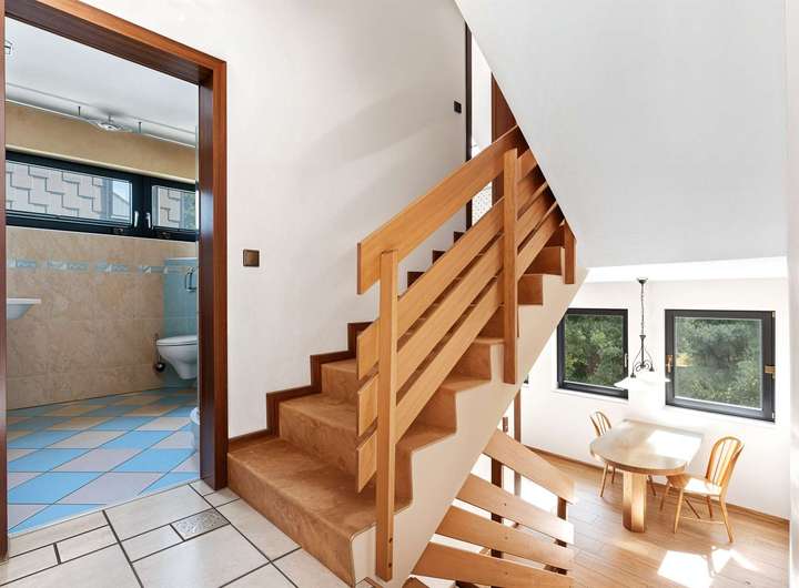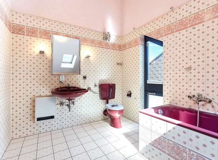 Drei Badezimmer – teils mit Wanne, Dusche und Tageslicht – sorgen für höchsten Komfort. Eines wurde 2004 modernisiert, . Zwei Küchen runden das durchdachte Raumangebot ab und bieten ausreichend Platz für kulinarische Entfaltung. Technisch überzeugt das Haus mit moderner Fußbodenheizung ab dem Erdgeschoss, hochwertiger Elektroinstallation, robusten Kupferleitungen und einem Glasfaseranschluss für schnelle digitale Vernetzung. Eine Garage mit elektrischem Tor sowie ein zusätzlicher Stellplatz bieten praktischen Komfort.