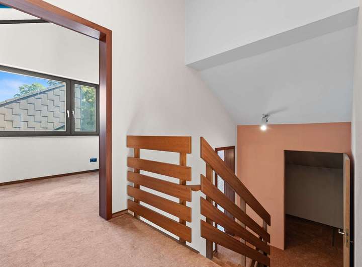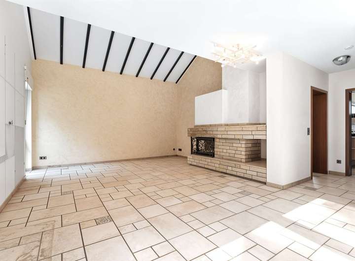 Auf ca. 175 m² Wohnfläche und einem 292 m² großen Grundstück entfaltet sich ein durchdachtes Wohnkonzept mit insgesamt 5 Zimmern, darunter vier großzügige Schlafzimmer. Das Herzstück des Hauses ist das lichtdurchflutete Wohnzimmer mit Kamin: Bodentiefe Fenster und eine elegante Schiebetür öffnen den Blick auf die weitläufige Sonnenterrasse – ein Ort für sonnige Stunden, entspannte Nachmittage oder stimmungsvolle Abende im Kreise von Familie und Freunden. Die offene Empore darüber ist ein architektonisches Highlight, das nicht nur einen herrlichen Blick ins Grüne bietet, sondern dem gesamten Raum eine unvergleichliche Leichtigkeit verleiht.
