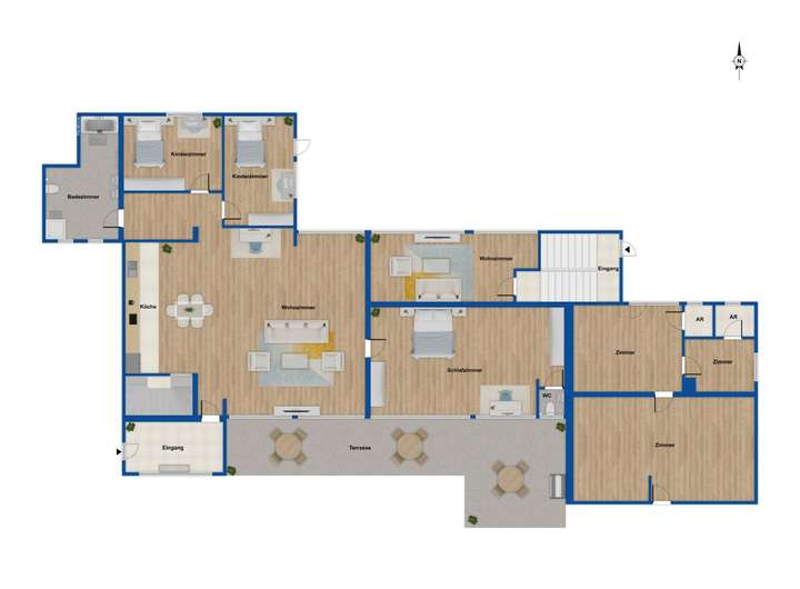 Zusätzliches Haupthaus mit offener Küche und großzügigem Wohn-/Essbereich sowie Terrasse