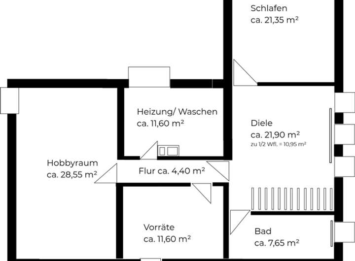 + Diele 20,90m² zu ½ ca. 10,95 m²