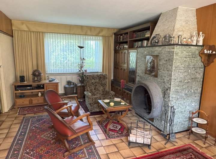 Von dort gelangt man in das große Wohn/-Esszimmer mit Kamin , die Küche
