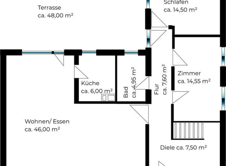 + Terrasse ca. 48,00 m² (zu ¼ in Wfl.)