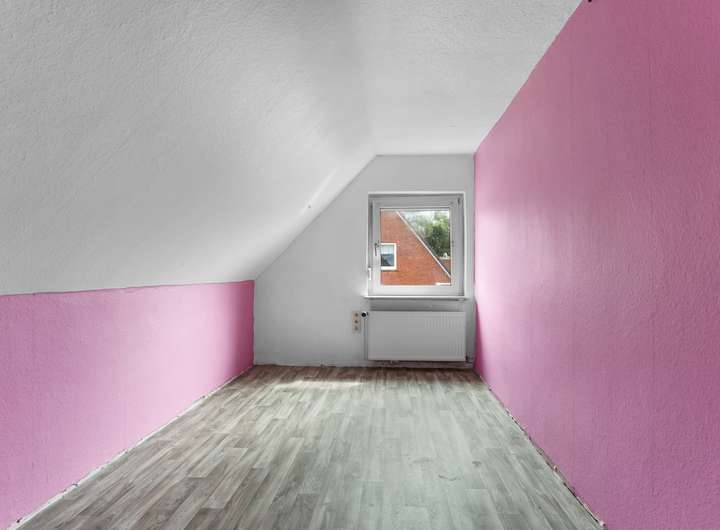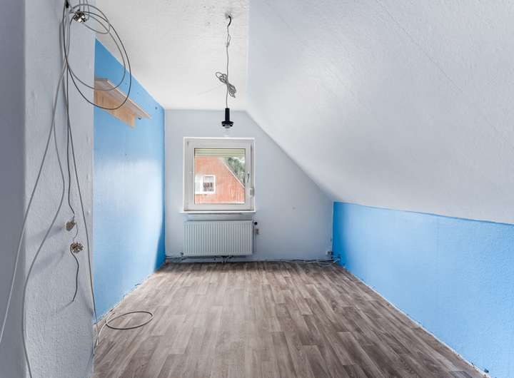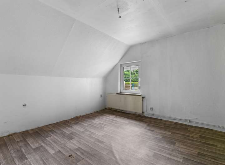 Das Dachgeschoss dient derzeit als großzügige Staufläche, bietet jedoch dank seiner Größe ebenfalls viel Entwicklungsspielraum für kreative Köpfe – ob als Ausbaureserve, Hobbybereich oder zusätzlicher Stauraum.