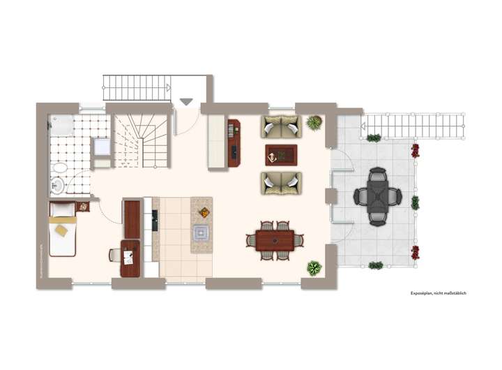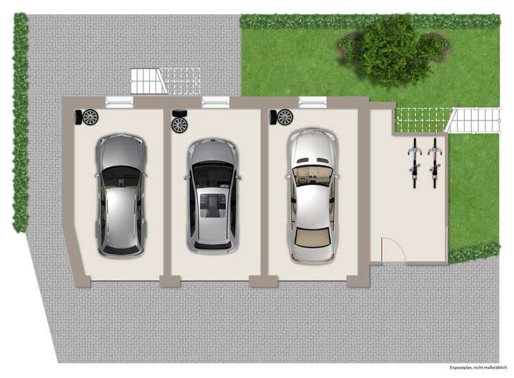 • Erdgeschoss: Drei großzügige Garagen sowie Nebenräume.
